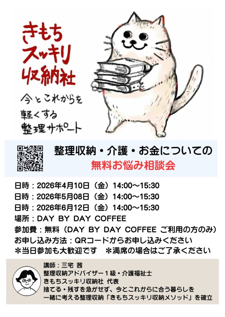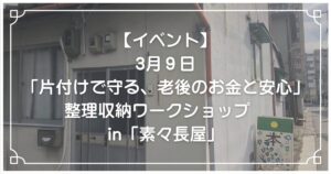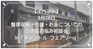 - テーマ:「整理収納・介護・お金についての無料お悩み相談会」