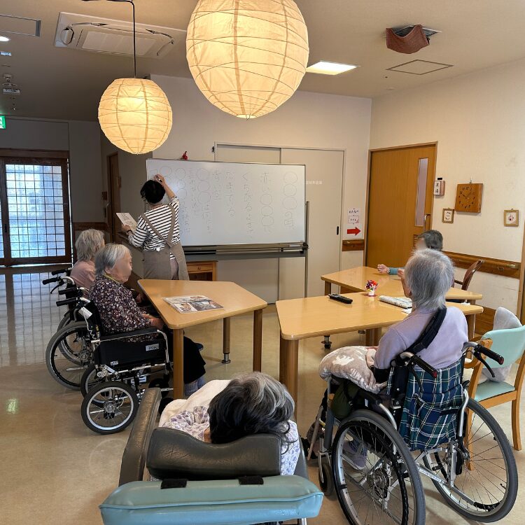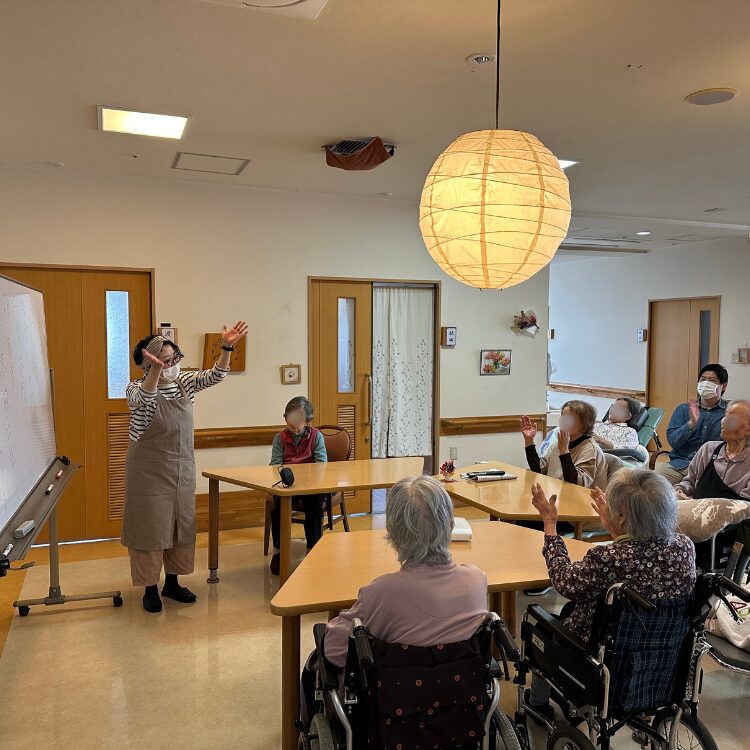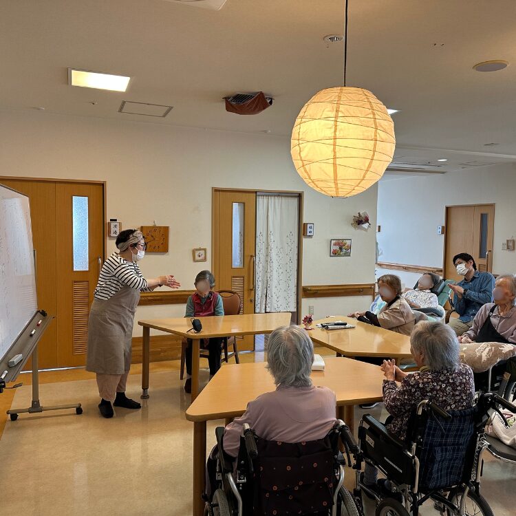 懐かしい歌を中心に、歌詞クイズや体操を取り入れながら、利用者の皆さまと楽しい時間を過ごすことができました。