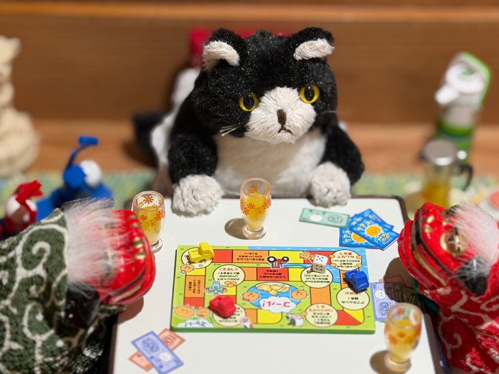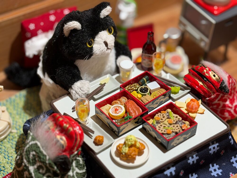 片付けを見守ってくれている猫の住吉 まるさんは、お友達と一緒にお正月を過ごしてます